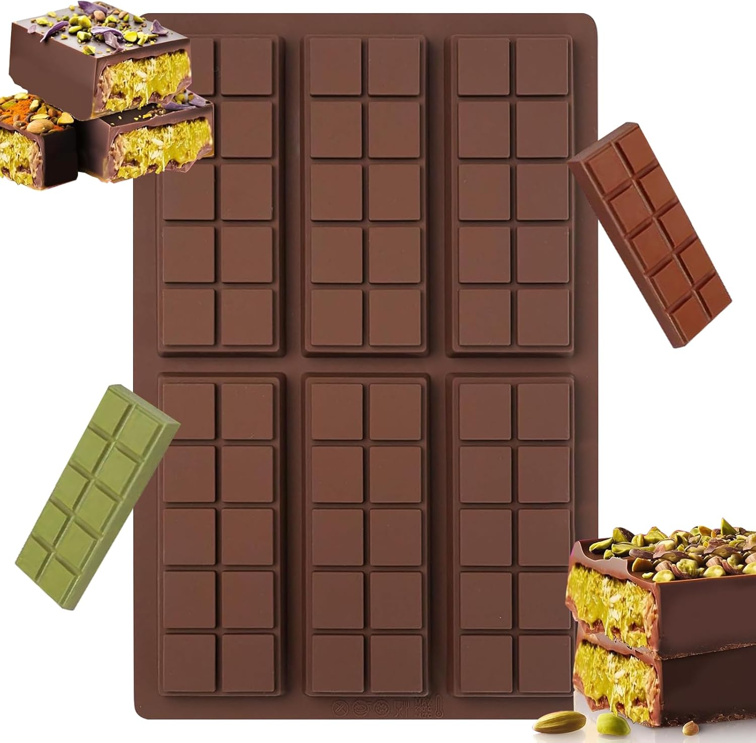 6-Cavity Rectangular Chocolate Bar Silicon Chocolate Mould