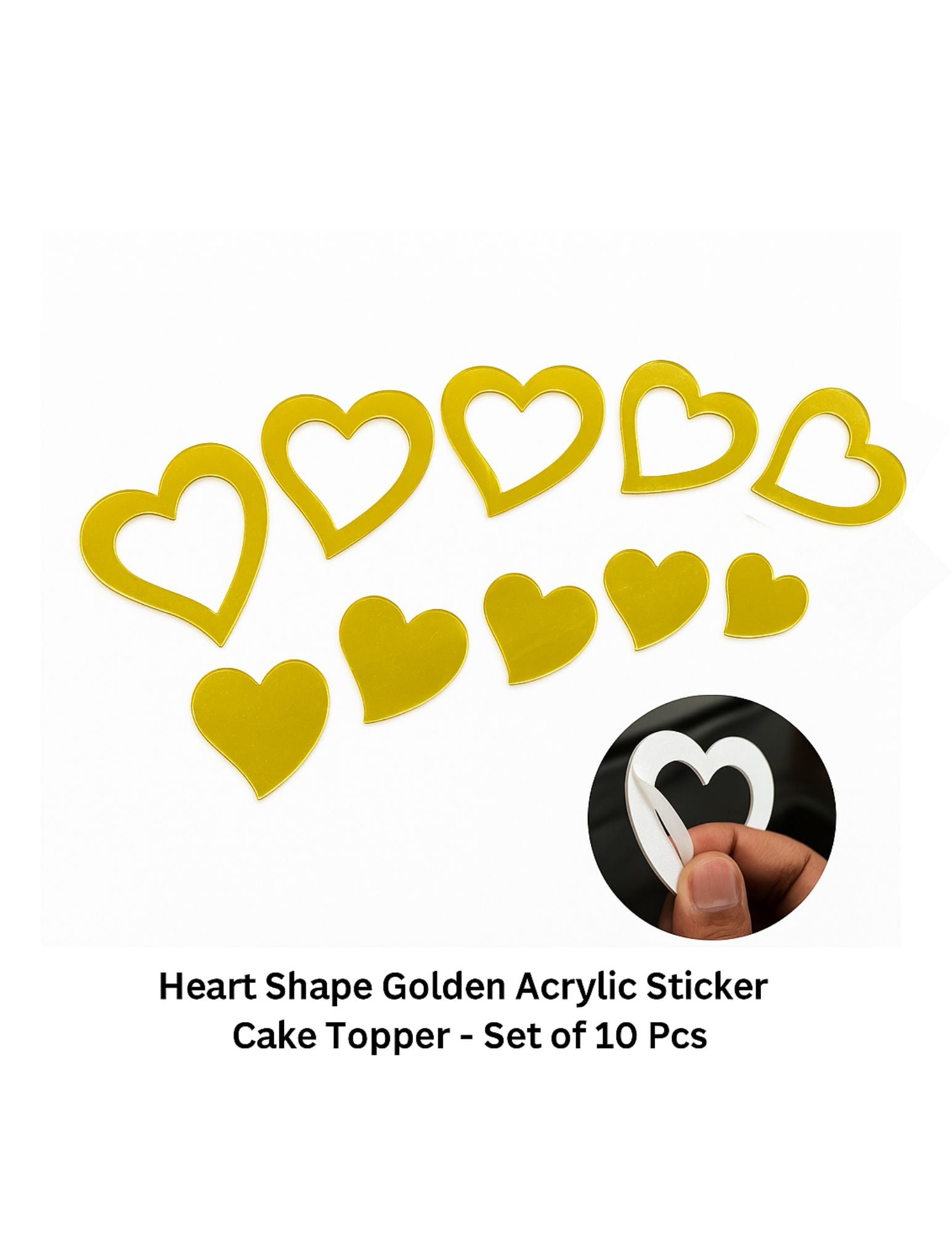 Golden Heart Acrylic Cake Toppers – Pack of 10