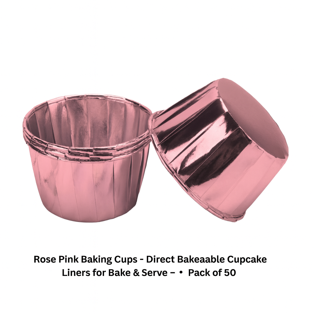 Rose Pink Baking Cups – Direct Bakeable Cupcake Liners for Bake & Serve | Pack of 50